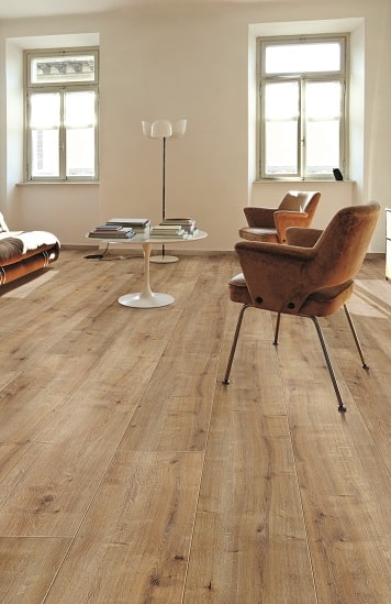 Optima heeft een natuurecht reliëf en natuurlijke kleuren. Is het hout, of is het laminaat? Je kunt het verschil bijna niet zien. Heel mooi: de matte finish. Dat geeft de vloer een rustiek, prachtig uiterlijk.